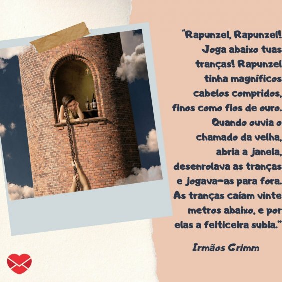 - Sim! Eu quero ir contigo! Mas não sei como descer… Sempre que vieres me ver, traz uma meada de seda. Com ela vou trançar uma escada e, quando ficar pronta, eu desço, e levas-me no teu cavalo.